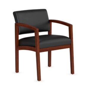 Black Vinyl Guest Chair with Arms / Modern Walnut