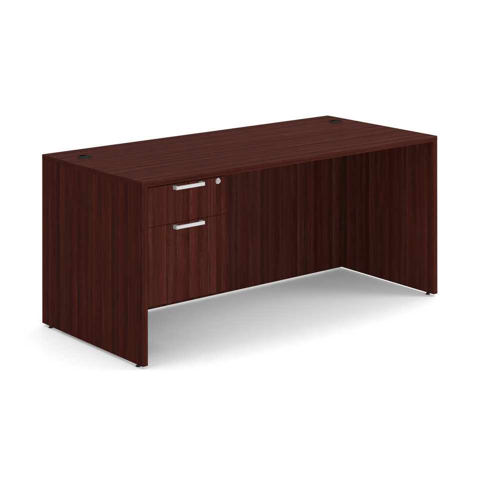 INSTOCK Laminate 66″W x 30″D Single Pedestal Desk – Mahogany